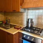 Dieses Apartment verfügt außerdem über eine voll ausgestattete Küchenzeile mit einer Mikrowelle, einem Kühlschrank und einem Kochfeld.
